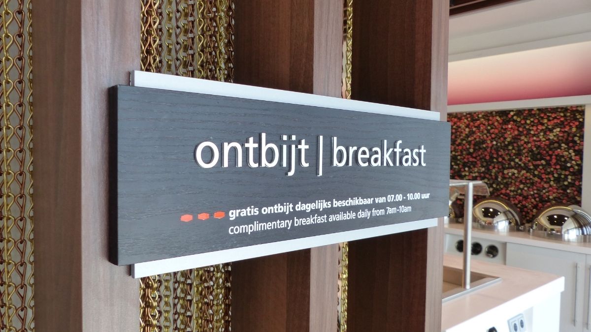Bewegwijzering, als essentieel onderdeel van de gastervaring, is nauwkeurig ontworpen en geïmplementeerd door Pioniers in Reclame. Door een grondige analyse van de locatie zijn de bewegwijzeringsborden op maat geproduceerd. Hierbij is een reeks aan materialen toegepast. Van gevreesde materialen en het gebruik van RVS tot borden met een luxe houten afwerking. Deze borden leiden gasten moeiteloos naar essentiële locaties binnen het hotel, waaronder parkeerplaatsen, de receptie, ontbijtruimtes, toiletten, liften en alle veiligheidsaspecten (zoals vluchtroutes).